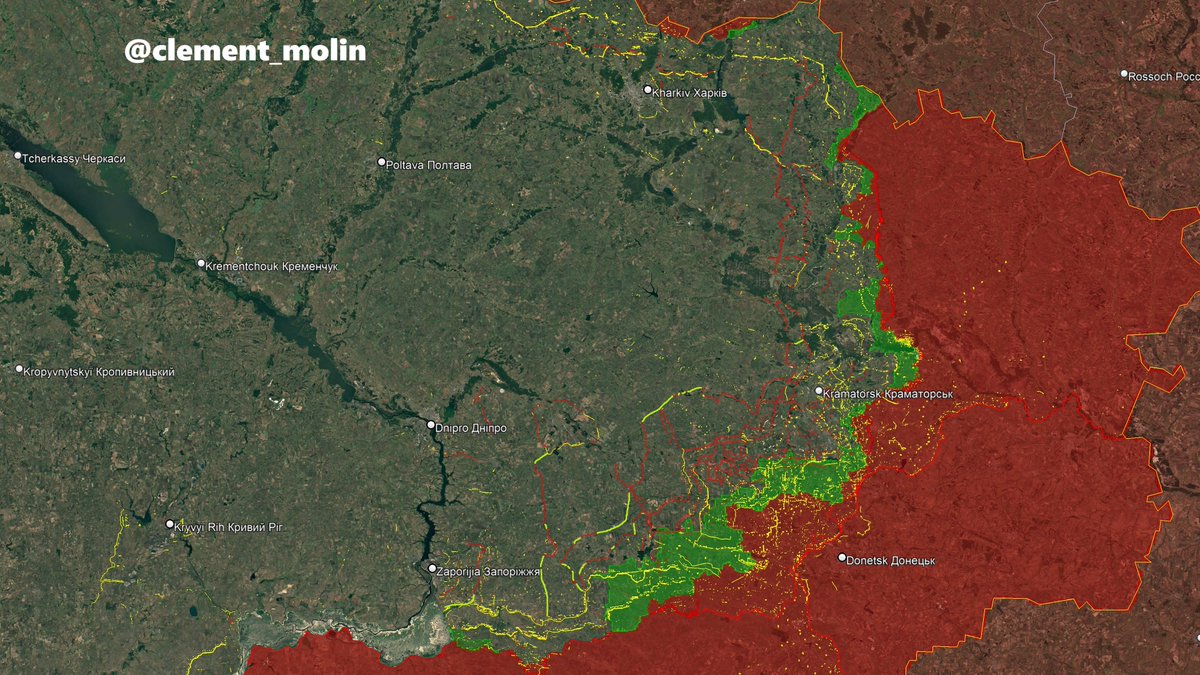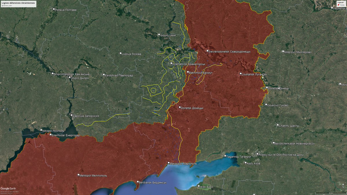 Kartografiral sem skoraj vse obrambne linije, analiziral njihove rezultate, neuspehe in nedavne spremembe. Na tej karti so v rdeči barvi označene utrdbe, izkopane leta 2025, v zeleni barvi pa ozemlje, ki ga je istega leta zavzela ruska vojska.