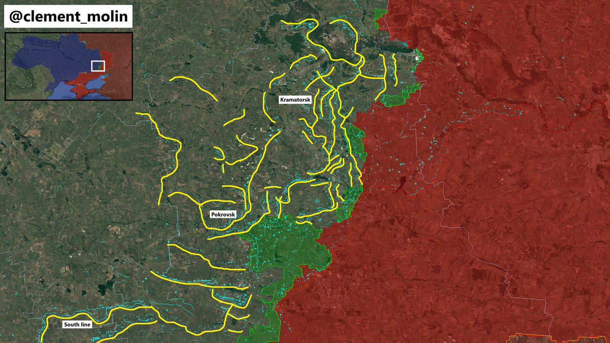 To ni primer na osi Pokrovsk'e-Houlialpole, kar pojasnjuje ruski napad v tej regiji letos. Trenutno se v tej regiji in po vsej vzhodni Ukrajini pripravljajo nove utrdbene linije.