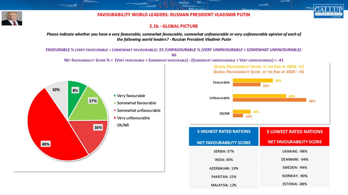 Vladimir Vladimirovič je od držav najbolj popularen v Srbiji s +37, sledi Indija s +30. Globalni rejting mu je sicer v šestih letih padel za -29
