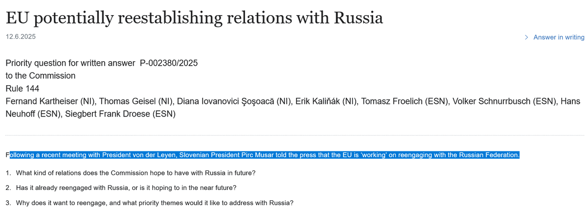 Ja lih tolk je, da bo nonstop gobcal o ˝sodelovanju˝ z Rusijo, da bo ves čas malo v etru. To ni za podcenjevat, ker je lahko kar začetek valjenja snežene kepe. Slovenski volilec je pa itak budala in bo na koncu res množično obkrožil kakšen izstop iz NATA (še toliko rajši ker bo JJ za to da ostanemo). Tudi še vsaj ena poslanka Resni.ce (Polona Frelih) je prav tako bolestno fokusirana na to kako je največji problem Slovenije to, da smo na strani Ukrajine in ne Rusije. Tako da tole ni samo Stevanovičev problem. Je zgleda dejansko velik del te stranke pro-rusizem.