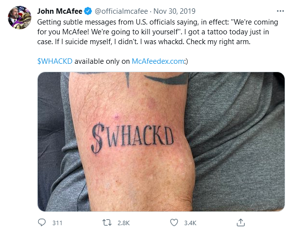 Upam, da McAfee ni umrl zato, ker se je odloču izpolnit obljubo in je pojest svojga pipija. R.I.P