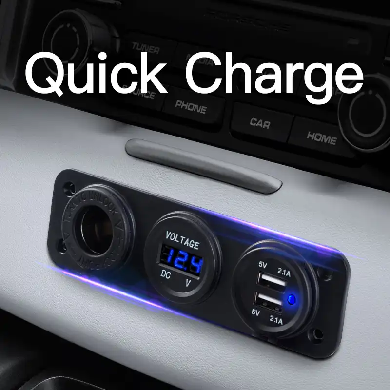 Sam sem naredil ene par takih polnilcev za ljudi v kombijih... Vzameš SBEC s HK za 5€ ( 5V/5A izhod ) in USB vgradni pa je.