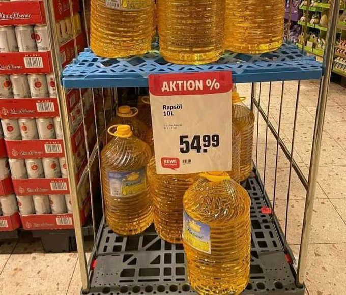 Kolk sem vidu dons v Hoferju so dobili sončnično olje, tud majo svinjino, po novih cenah.![]()
