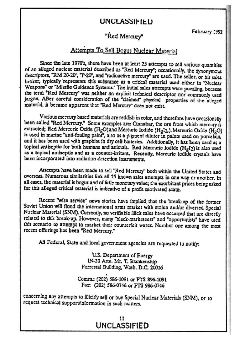 Well, amid the Soviet collapse, hucksters in Russia & elsewhere sought to cash in on these rumors by marketing "red mercury" to gullible foreign buyers.