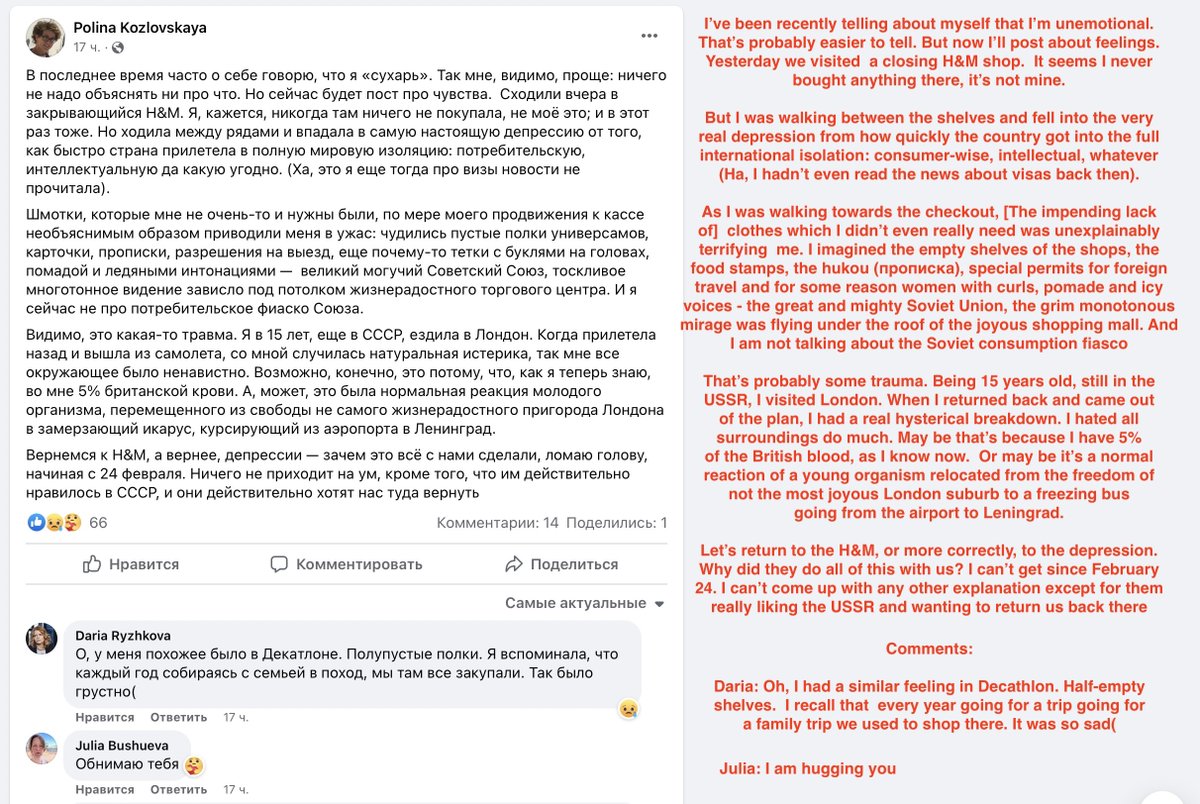 Russian discourse is largely centred around how much our consumption standards have fallen or will fall. And nothing else matters Russia is not an idealistic irrational society as many picture it. It's ultra-pragmatic culture. If you think it can be moved by the killed Ukrainian civilians (or Russian soldiers KIA), you are insane. Decrease in consumption standards, that's the *only* thing that really hurts