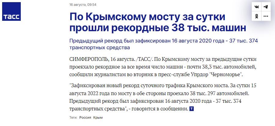 A record 38,000 cars crossed the Crimea bridge yesterday, an entire town’s worth of residents. Reports of huge traffic heading out of the peninsula into Russia - and that was before even more explosions rocked an air base and ammo depot today. And reports of huge queues at Simferopol train station today. People clearly expecting more instability [video]