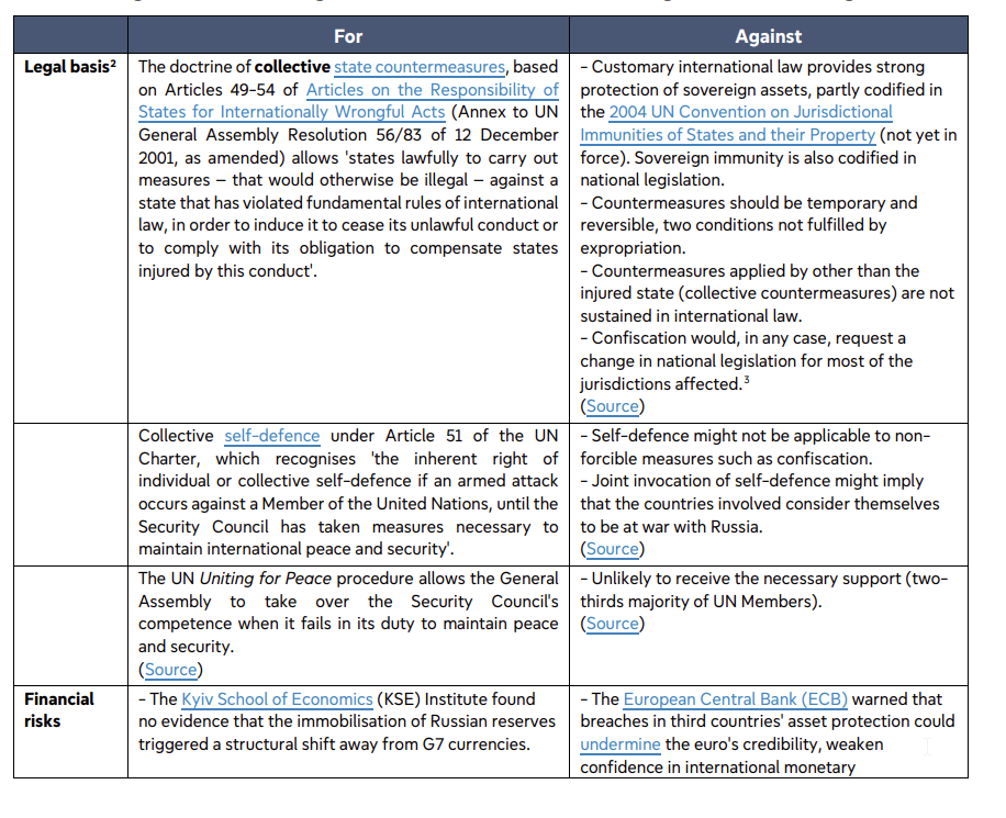 Relansot is članka iz EU parlameta : Confiscation of immobilised Russian sovereign assets State of play, arguments and scenarios