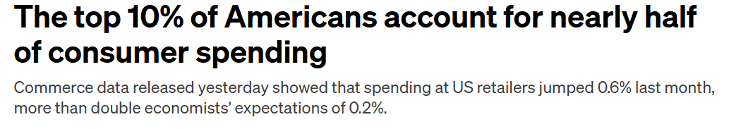 Well…it wouldn’t be most economists’ first choice. While consumer spending might appear strong right now, it’s balancing on one leg. If the top 10% of consumers decide to pull back due to changes in the stock market or more layoffs, it could, in the worst-case scenario, hurtle the US into a recession.