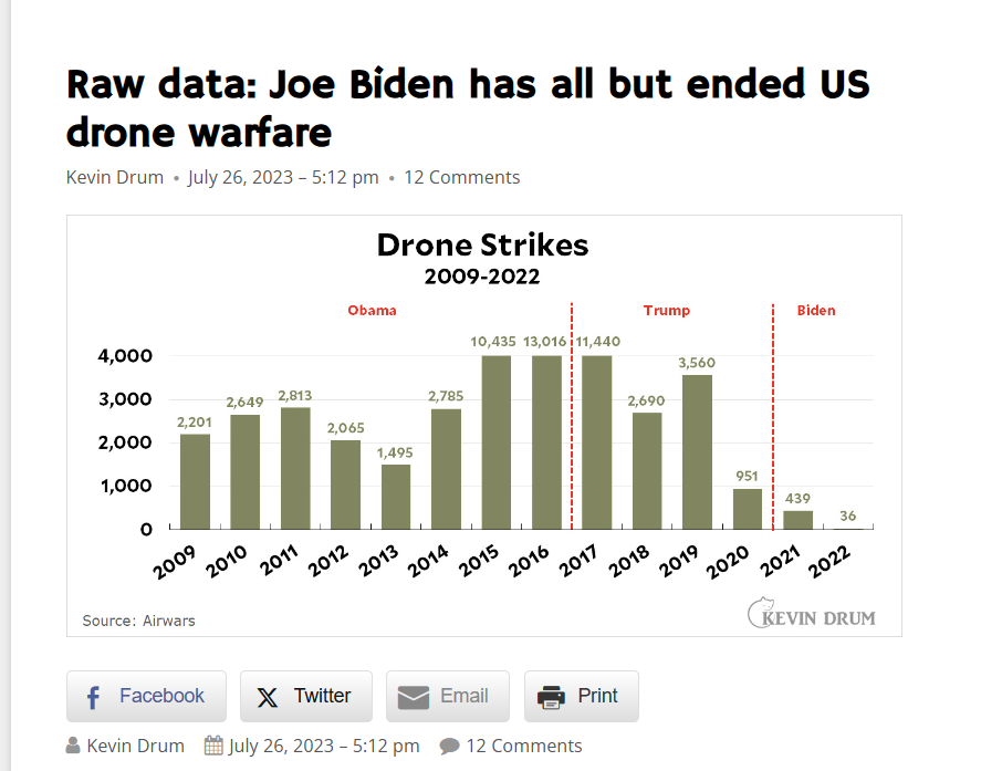 Remember The Drone War? It was the thing that 'progressives' declared the #1 foreign policy issue during the Obama years. Trump made them worse and more secretive, while Biden basically ended them completely and just.......total silence from 'the left'.