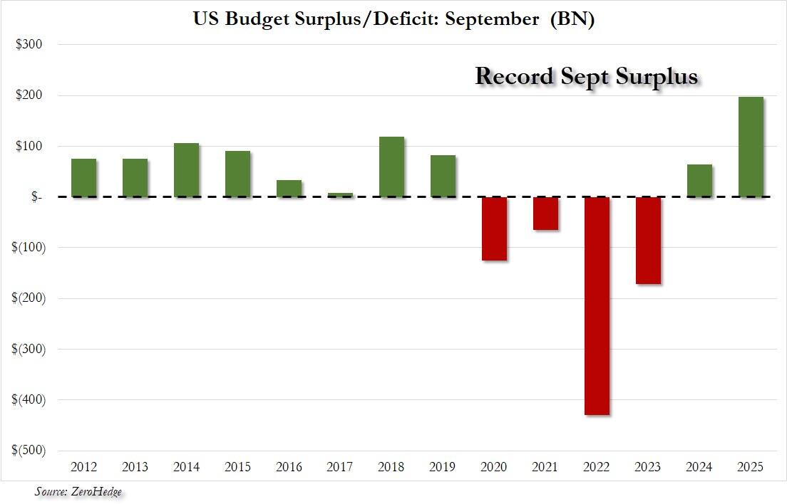 US Reports Biggest Ever Budget Surplus For Month Of September Thanks To Record Tariffs