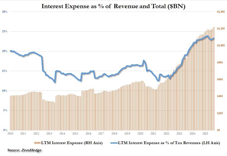 And with annual gross interest unlikely to decline ever again, because while rates may drop, the total amount of debt on which they accrue will only keep rising, it is safe to say that every month and every year we will have a record LTM interest print...