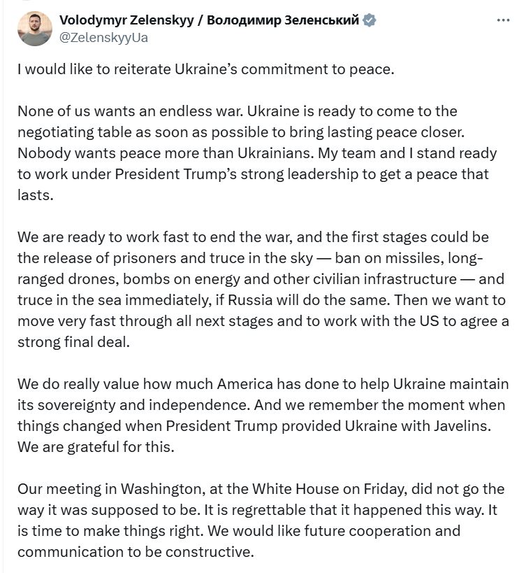 Hja, kaj pa vem... Mediji že precej razglašajo, kako Zelenski obžaluje spor s Trumpom in, da želi še drugo možnost, da mu ugodi... Ostali zaenkrat še vedno mencajo