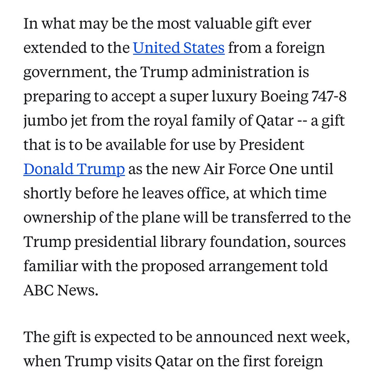 Katar naj bi Trumpu podaril VIP Boeing 747 za uporabo kot Air Force One, ko bi zapustil položaj bi pa postal last njegove predsedniške knjižnice