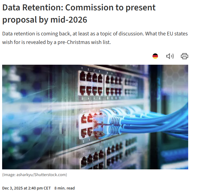 Data retention is coming back, at least as a topic of discussion. What the EU states wish for is revealed by a pre-Christmas wish list.