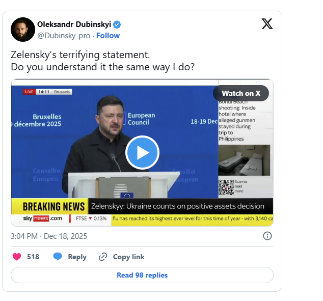 8.12.2025 At a press conference in Brussels at margins of the EU Summit, President Zelensky said that the U.S. position on Ukraine's NATO membership could change when "politicians change or someone dies."