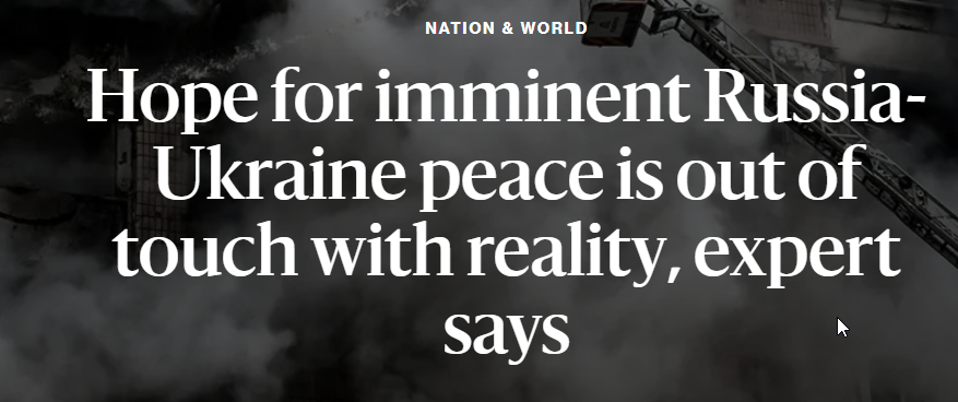 I see signs of closer alignment between Ukraine and Europe on the one hand and the United States on the other hand. But I don’t see that as progress toward ending the war, because the fundamental problem isn’t an alignment between Ukraine, Europe, and the United States; it’s an alignment between Ukraine and Russia. And that alignment is as far away today as it has been in any time in the last four years. So yes, there’s progress on one side, which is important, but there’s no progress getting to an end of the war.