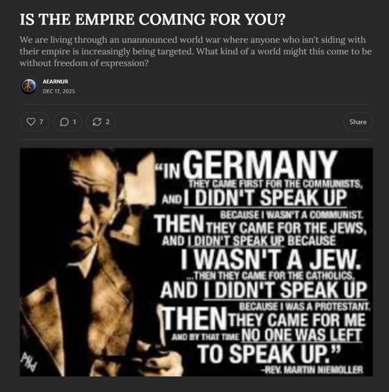 Ta boomerski mem o tem kako so najprej prišli po Žide potem pa po tebe je eden od bolj butastih delov folklore "povojnega" svetovnega režima.