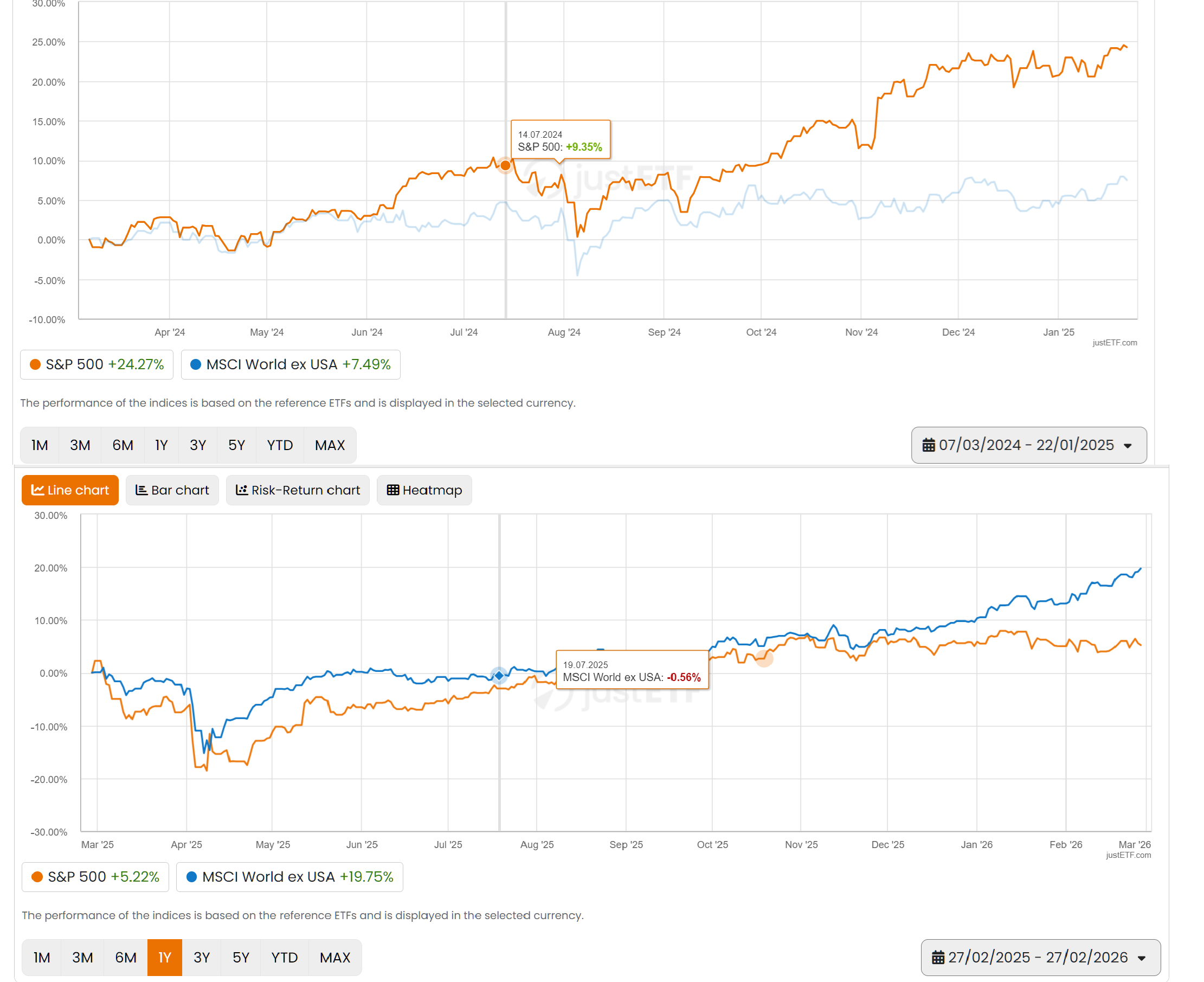 Pol pa poglej leto 2025.. SP500 vs World ex USA naenkrat 5% proti 20%.. Obraten trend.. Kaj se je spremenilo v letu 2025? Ti pade kaj na pamet?