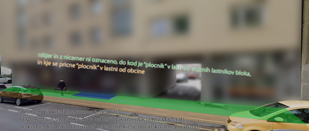 Moje vprasanje pa je: v kolikor parkiram vozilo povsem ob steno bloka (vsaj v sirini 1.20m je pas se ZAGOTOVO last etaznih lastnikov) - ali mi redar/nadzornik/policaj sme napisati kazen? Ker tudi on ne more vedeti, do kod seze parcela v lasti od nas, in ne more vedeti kje se pricne parcela od obcine. Na komu je breme dokazovanja? Ali smem parkirati na "nasi parceli", cetudi morda delno z avtom zasedam ze obcinski del (cesar ne morem vedeti zagotovo, KER NI NOBENIH OZNACB), ali ne? Ali breme dokazovanja, da NISEM prav parkiral na strani uradne osebe? Skratka - niti redarji, niti lastniki ne poznamo NATANCNE meje. Kako gre to pri nas: ali smem jaz tam parkirat in mi mora redar dokazati, da sem napacno parkiral (delno na obcinski trasi), preden mi napise kazen; ali pa moram jaz redarju dokazovati, da nisem na obcinskem temvec na nasem - zato da mi on nebi napisal kazni?