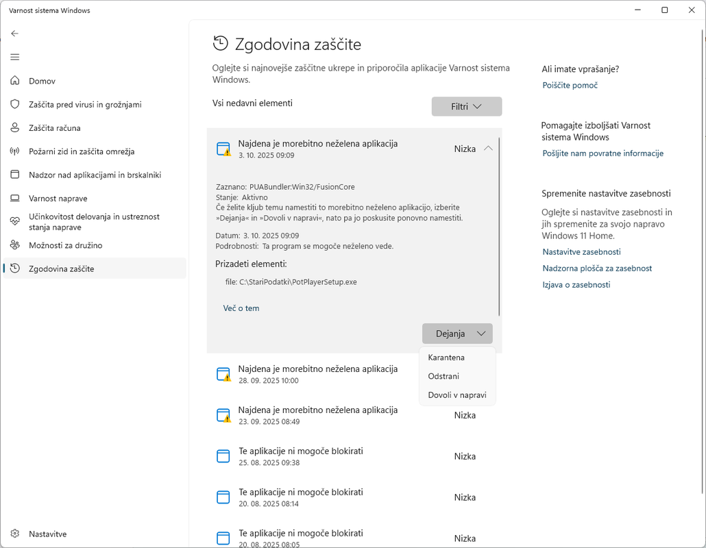Pa če mi skoz teži in pravi "Action Recomended",pa pogledam kaj hoče pa ima na ikonici dol pri datumu in uri rumen klicaj namesto zelenega kljukca zaradi tega ker pravi: "Iobit Malware Fighter is snoozed. Open it." Pa je posodobljen,on pa pravi da je snoozed,in dela rumeni klicaj na ikoni. To me moti. Iobit Malware Fighterja pa ne bom odstranjeval samo zaradi njegovega narobnega obvestila.