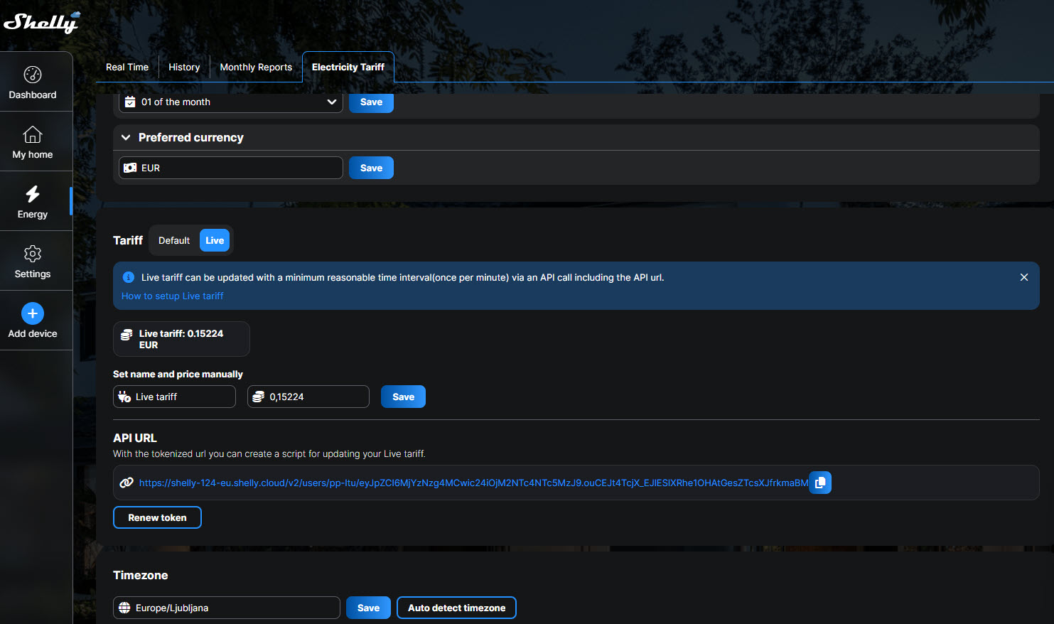 Shelly - Live tariff