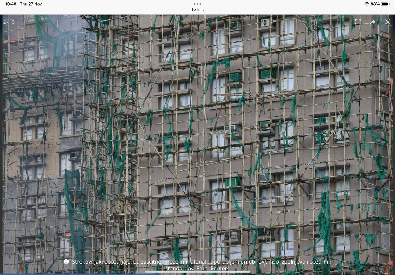 Ogenj, ki je v sredo zajel kompleks stanovanjskih stolpnic v Hongkongu, še ni pogašen. Umrlo je najmanj 55 ljudi, skoraj 300 je pogrešanih. Tragedijo bi lahko povzročila malomarnost gradbenega podjetja, ki pri obnovi ni uporabljalo ognjevarnih materialov.