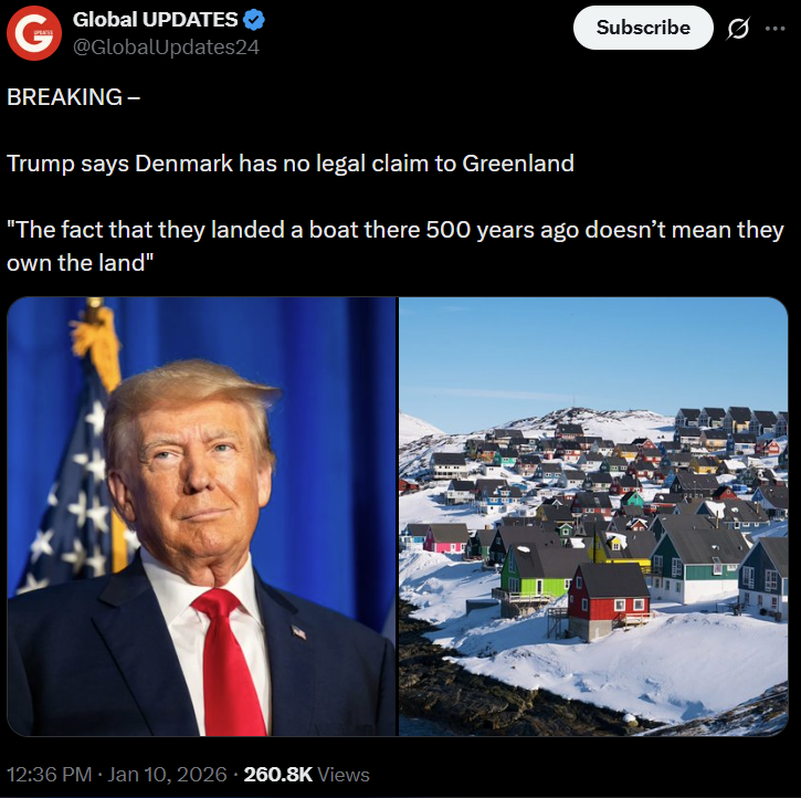Je pa seveda tudi res, če bi Američani, pardon če bi Trump na Grenlandiji uporabil vojaško silo, se mu ne morejo upreti niti Grenlandci, niti Danska in niti EU. Si bo pač s silo prilastil, samo zato ker si lahko, nekaj kar ni njegovega.