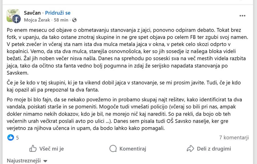 Jen0 medtem žrtev jajčnih napadov (uro pa dogodku že n zgroženih objav na socialnih omrežjih in po medijih, kakšno naključje). Vse bolj zgleda, da je mularija spet metala jajca naokoli (ni pa 2x za rečt da je false flag, pa si jih je režiser sam).