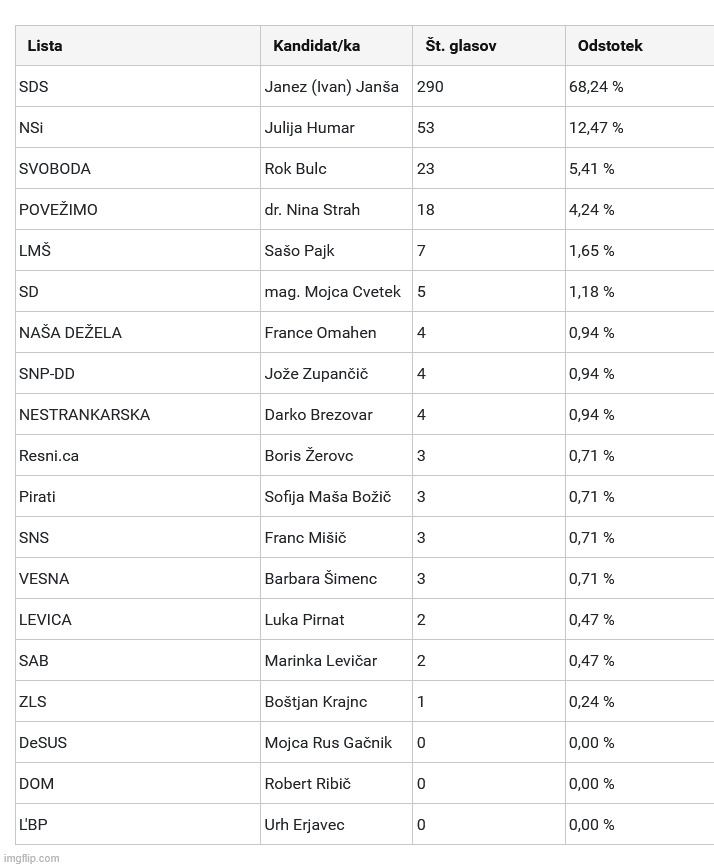 Plus, omenjene tri desnjakarske partije, to je itak glas za korupcijo, plus dodatno trumpizem, kot je videti, torej hujskanje, ksenofobija in vse ostalo desnjakarsko stranje. Spodoben človek ne bo volil nečesa, kar smrdi po trumpizmu.