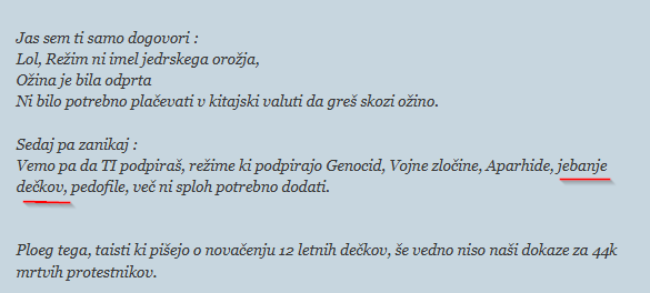 Vemo pa da TI podpiraš, režime ki podpirajo Genocid, Vojne zločine, Aparhide, jebanje dečkov, pedofile, več ni sploh potrebno dodati.