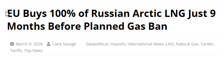 In a stark display of policy versus practice, European Union buyers snapped up every single cargo of liquefied natural gas (LNG) from Russia's Yamal LNG project in February 2026--the first time since April 2018 that all shipments headed straight to EU ports. This comes as the bloc ramps up rhetoric about energy independence, with a full ban on Russian LNG set to kick in on January 1, 2027. The irony is palpable: while EU leaders trumpet sanctions and diversification, their markets remain hooked on Arctic-sourced Russian gas, funding Moscow's coffers amid ongoing geopolitical tensions. When will this hypocrisy be called out? Perhaps only when President Vladimir Putin decides to redirect Russia's LNG, oil, and natural gas exports away from Europe entirely, forcing the EU to confront the real costs of its indecision.