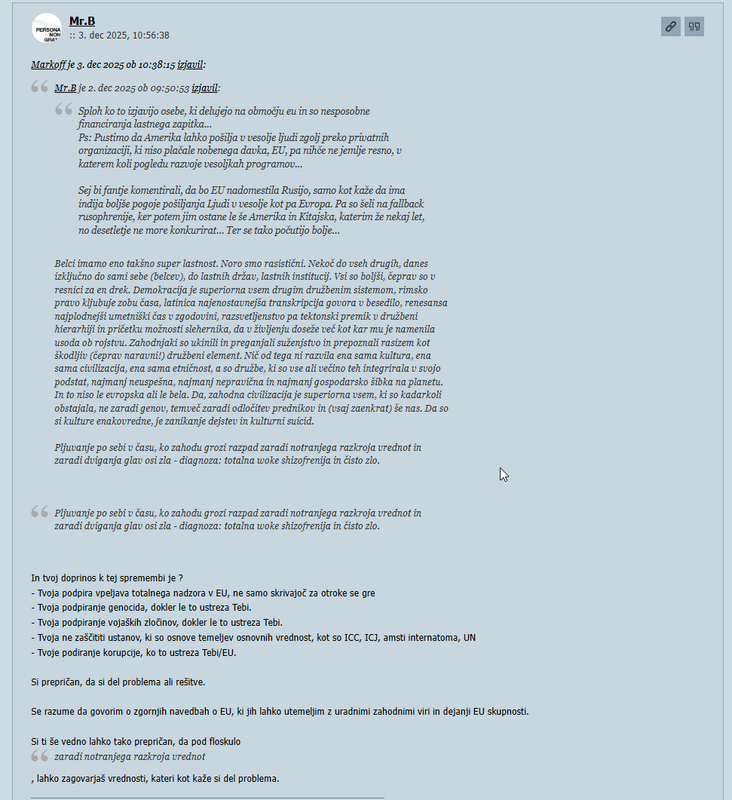 PS: Seveda lahko pa povzameš kako se je odločila EU skupnost pa tu ne mislim, ko so se poscali na mednarodne norem v gazi in mednarodnih sodišč, ampak tudi odziv diareje na mednarodno pravo Venezuele, in kako sedaj Merz pravi da gre all in za Ameriko.