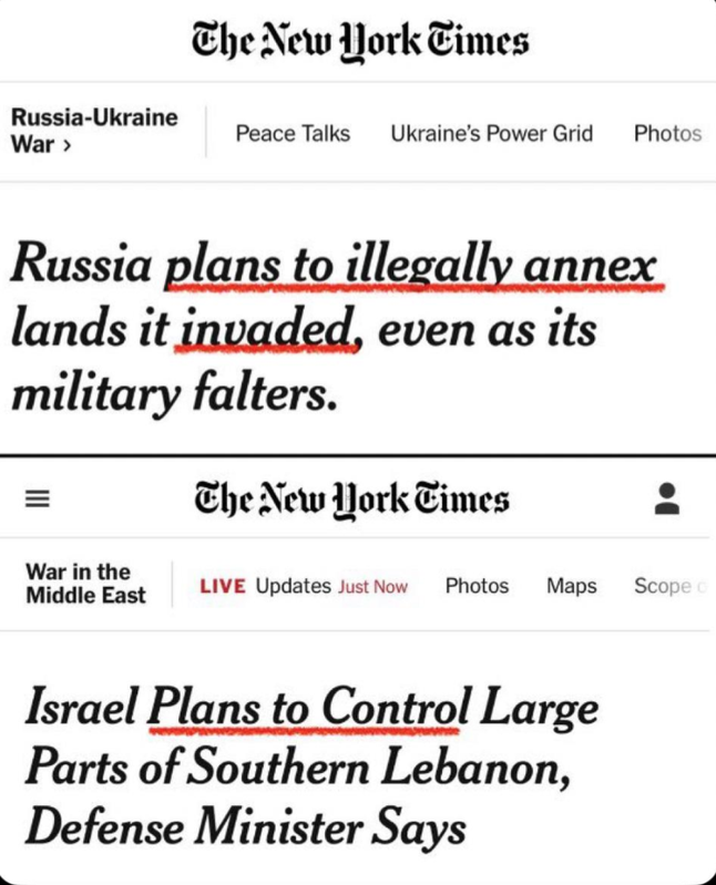Razlika je da Rusije nihče ni raketiral medtem ko Hezbollah to redno počne Izraelu, zato si Izrael dela buffer, Putin pa aneksacijo za imperialne namene.