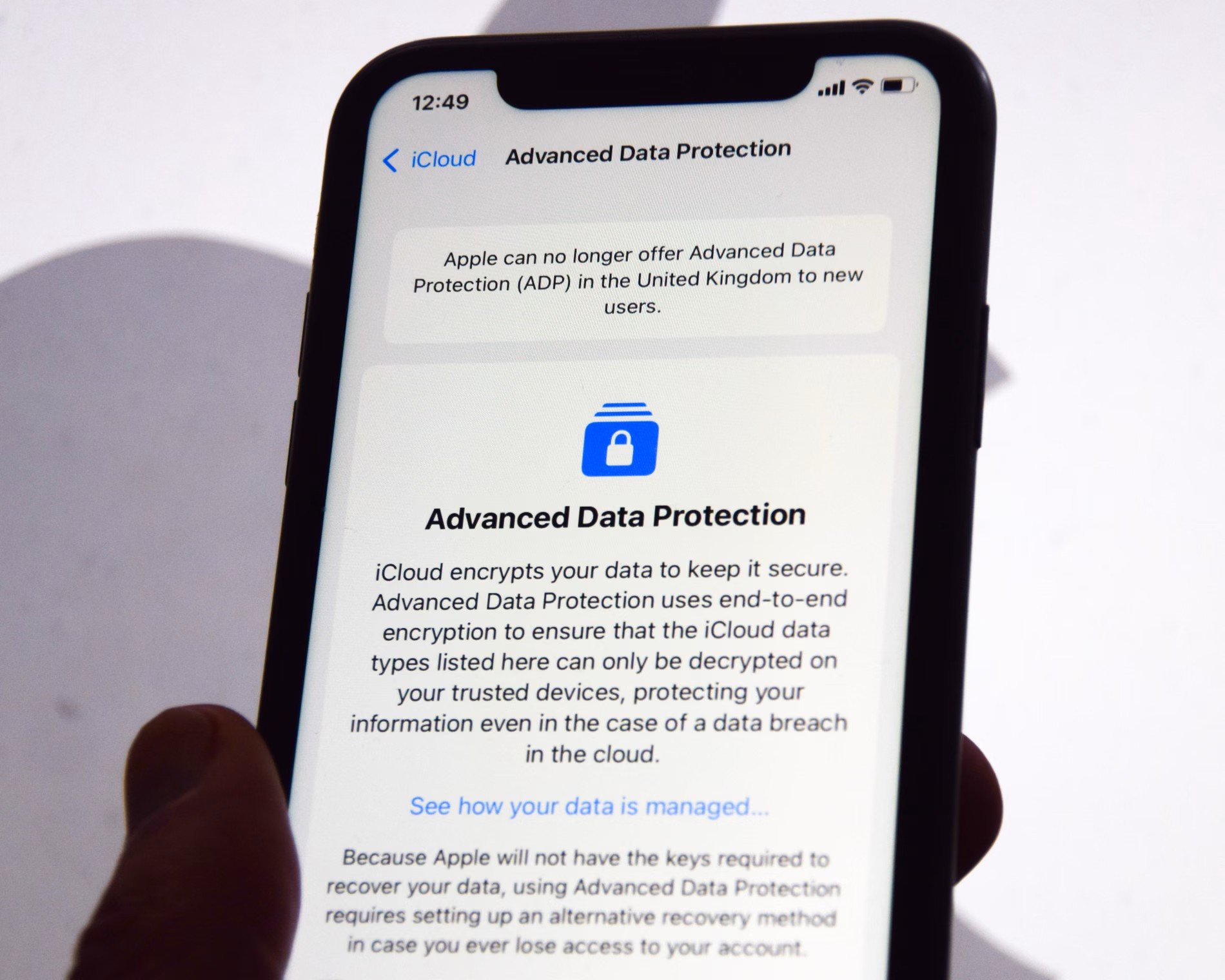 Britansko notranje ministrstvo je Applu ponovno odredilo, da mora zagotoviti dostop do kopij podatkov, ki jih imajo uporabniki v iCloudu. Novi ukaz, ki se formalno imenuje obvestilo o tehničnih zmožnostih (technical capability notice) se to pot omejuje na britanske prebivalce in ne celi svet. Dodajajo, da se bodo še naprej zavzemali za varnost britanskih državljanov, kamor očitno sodi tudi vohljanje po njihovih podatkih.