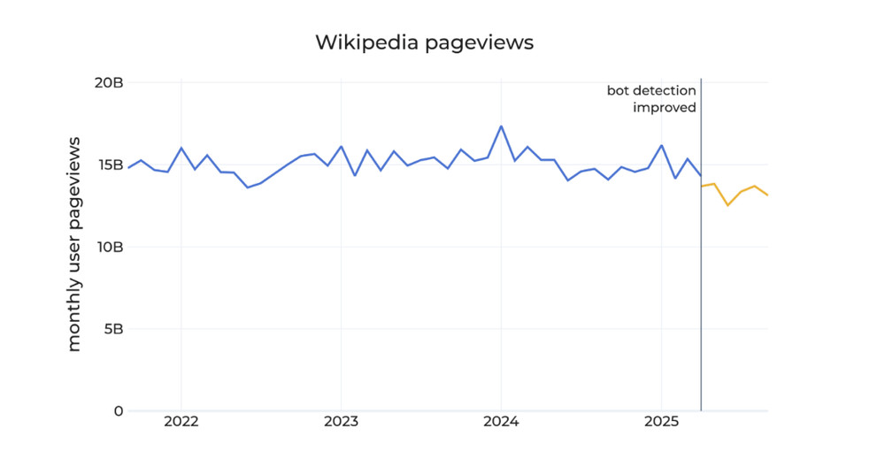 Slo-Tech - Niti Wikipedija ni izjema v splošnem trendu upadanja obiska spletnih strani, saj ljudje zaradi čedalje množičnejše uporabe pomočnikov umetne inteligence ne obiskujejo več spletnih strani, temveč se zadovoljijo z njihovimi povzetki. Direktor produktov v Fundaciji Wikimedia Marshall Miller je zapisal, da manj obiska pomeni tudi manj prostovoljcev, ki dodajajo in urejajo vsebino, pa tudi manj donatorjev.