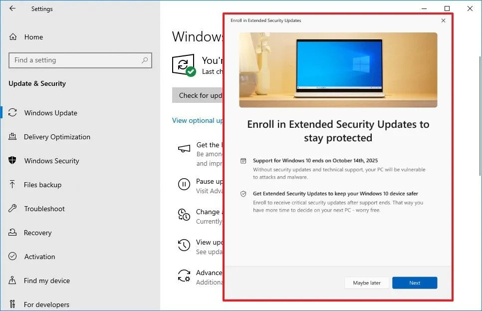 Slo-Tech - Mesec dni po koncu uradne podpore za Windows 10, s čimer se je končalo obdobje brezplačno posodobitev, je Microsoft nepričakovano izdal nov popravek za vse uporabnike Windows 10. Razlog za izdajo popravka KB5071959 je precej ironičen, saj z njim odpravljajo težavo, ki je preprečevala vključitev v sistem podaljšane podpore ESU (Extended Security Updates).