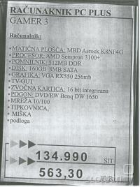 Prodajalec nam je najprej povedal, da v svoji ponudbi nima tako poceni računalnika, kot bi ga za svoje potrebe potreboval naš oče, kar je vsekakor pohvalno, a se je kasneje kljub temu odločil za predsestavljeni sistem "gamer 3". A je žal taisti prodajalec v svojo ponudbo pozabil vključiti paket pisarniškega programja (Works, Office, OpenOffice), kar naredi le-to dokaj neprimerno za očetove potrebe. Da je mera polna, ponudba ne vsebuje operacijskega sistema. V ponudbi se je znašla tudi Canonova multifunkcijska naprava MP-170, katere cena pa je v sorodnih trgovinah nižja do 7 tisočakov. Ta ponudba je tudi edina do sedaj, ki je vključevala CRT zaslon (17" 1024x768 pri 90 Hz). Skupna ocena je torej nezadostno.
